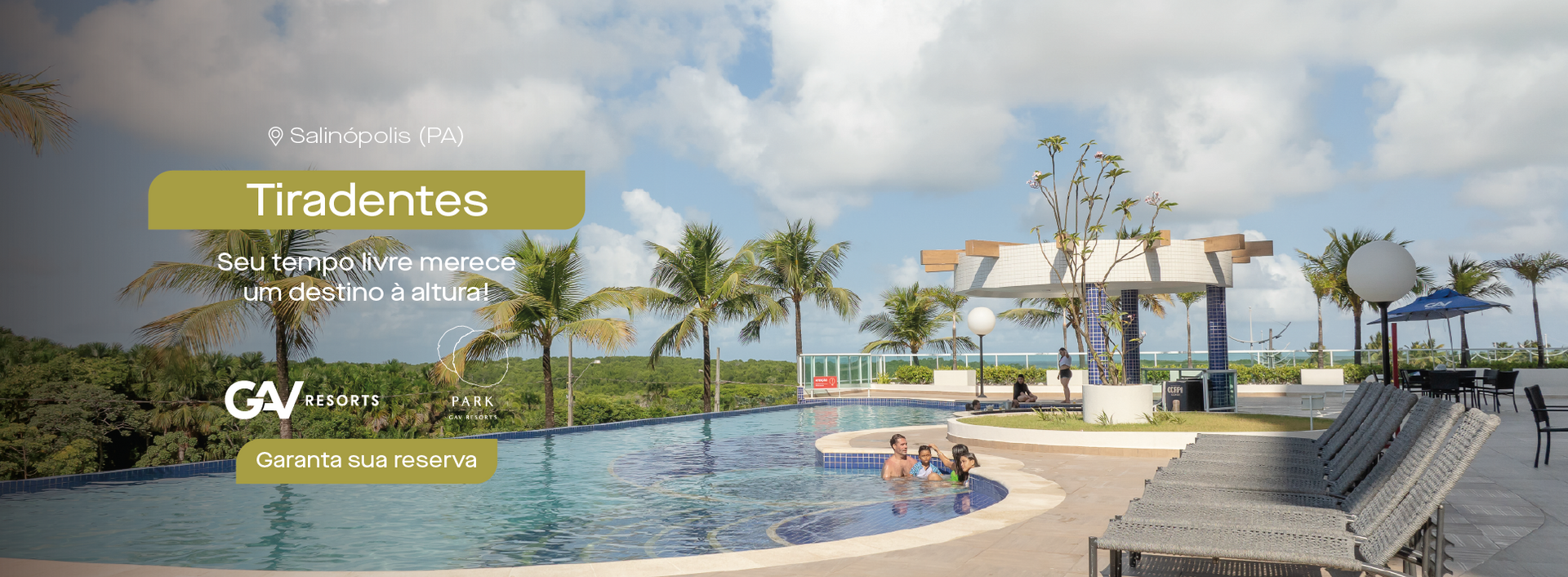 O Park GAV Resorts conta com uma área de lazer completa, com duas piscinas de borda infinita, bar molhado, sauna submersa e piscina infantil. Além de uma quadra poliesportiva, playground, cinema, brinquedoteca e sala de jogos.